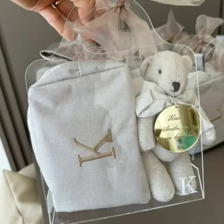 Porta Maternidade acrílico Martina + Bandeja personalizada com tampa acrílica